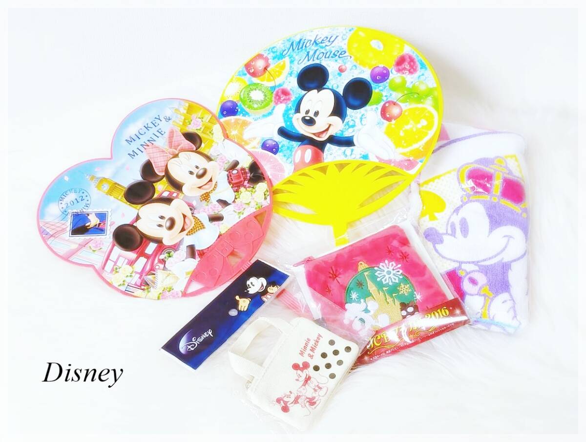 - ⚜ Disney ポーチ,タオル,うちわセット【ミッキー&ミニーなど/計5点】未使用 新品