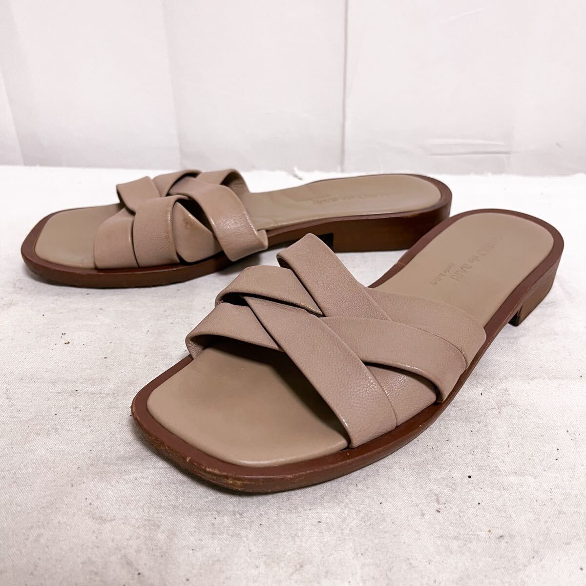 - 和832★ MAURO de BARI マウロデバーリ レザー サンダル シューズ イタリア製 37 ベージュ レディース
