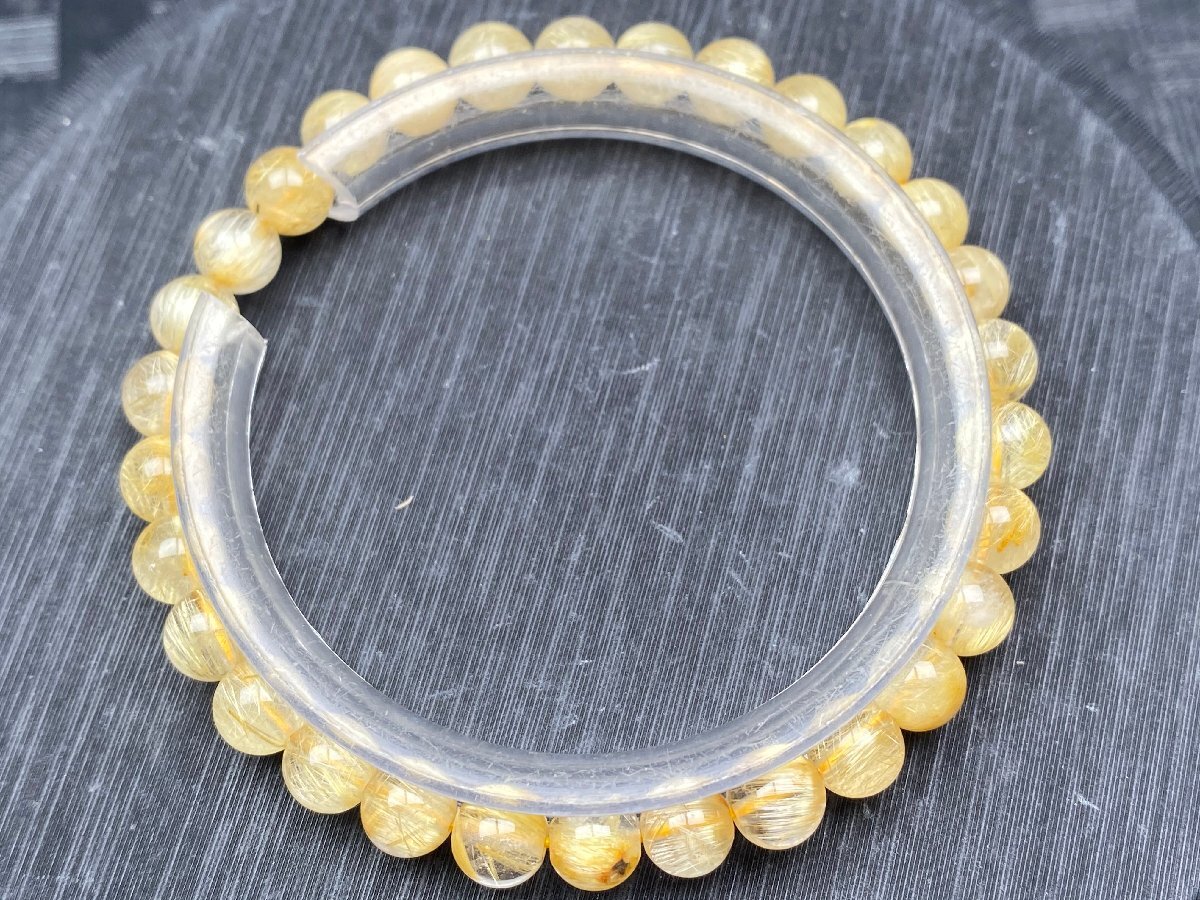- 即決 0614k159 天然美品★【30Aキャッツアイ黄金タイチンルチル】★ブレス 6.5mm(新品)