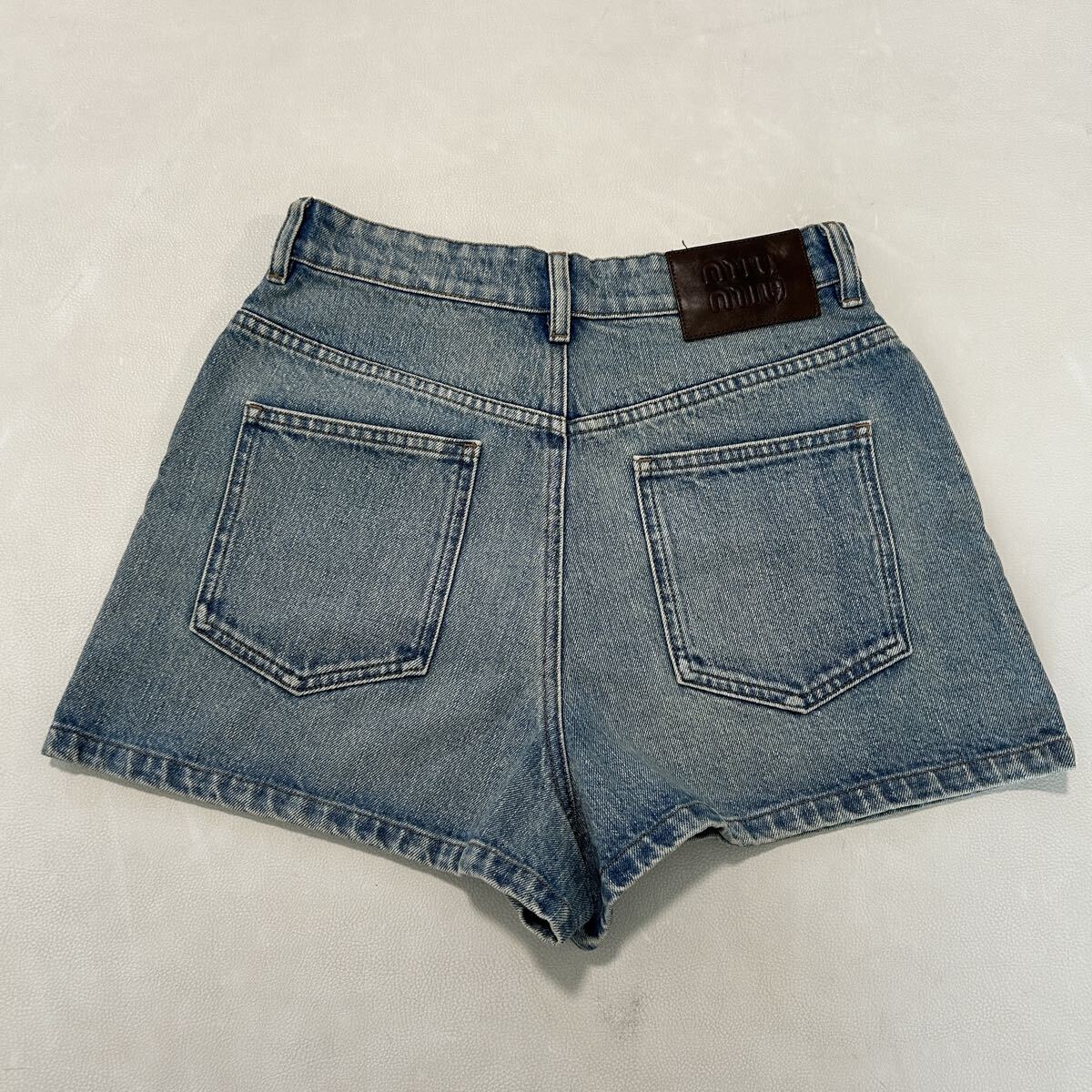 - 美品 miu miu ミュウミュウ デニム ショートパンツ レザーパッチ