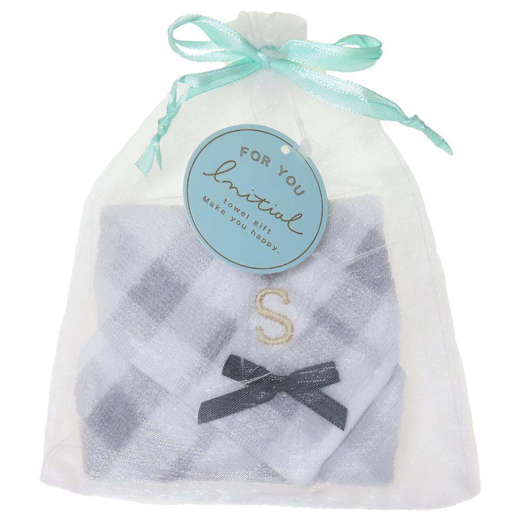 - ミニタオル リボン付きイニシャルタオル S クーリア プレゼント シンプル 巾着入り グッズ