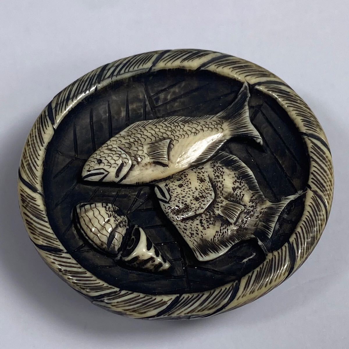 - 根付け 友信 NETUKE 時代物 魚 ヒラメ 鮭 鮑 貝 平目 細密彫刻 東洋美術 サザエ 根付 時代 有馬友信 美術品 古美術 アンティーク