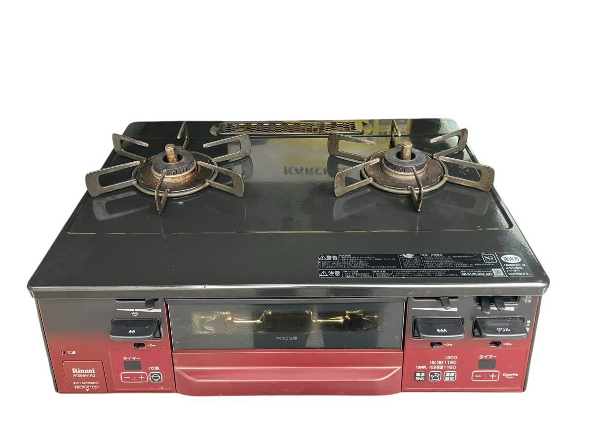 - 【動作品】Rinnai リンナイ RT66WHR 2021年製 都市ガス ガスコンロ ガステーブル 都市ガス用 左強火 rt66wh1rg-bar レッド ブラック