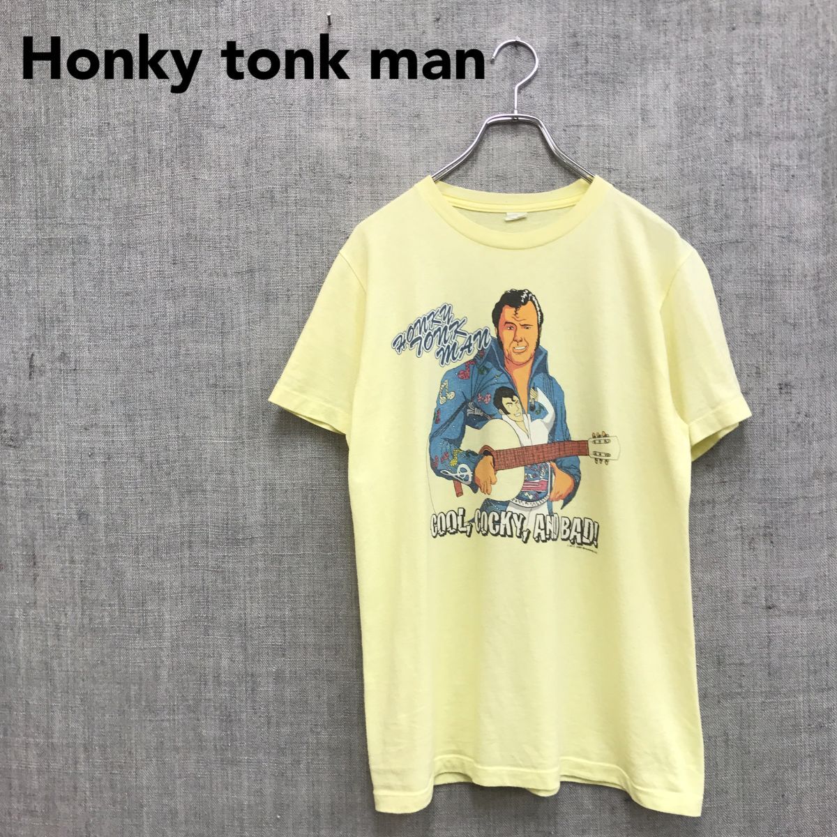 - 2K1200-R◆HONKY TONK MAN 半袖プリントTシャツ◆メンズ 紳士 トップス ウェインファリス イエロー 古着 ユーズド イラスト