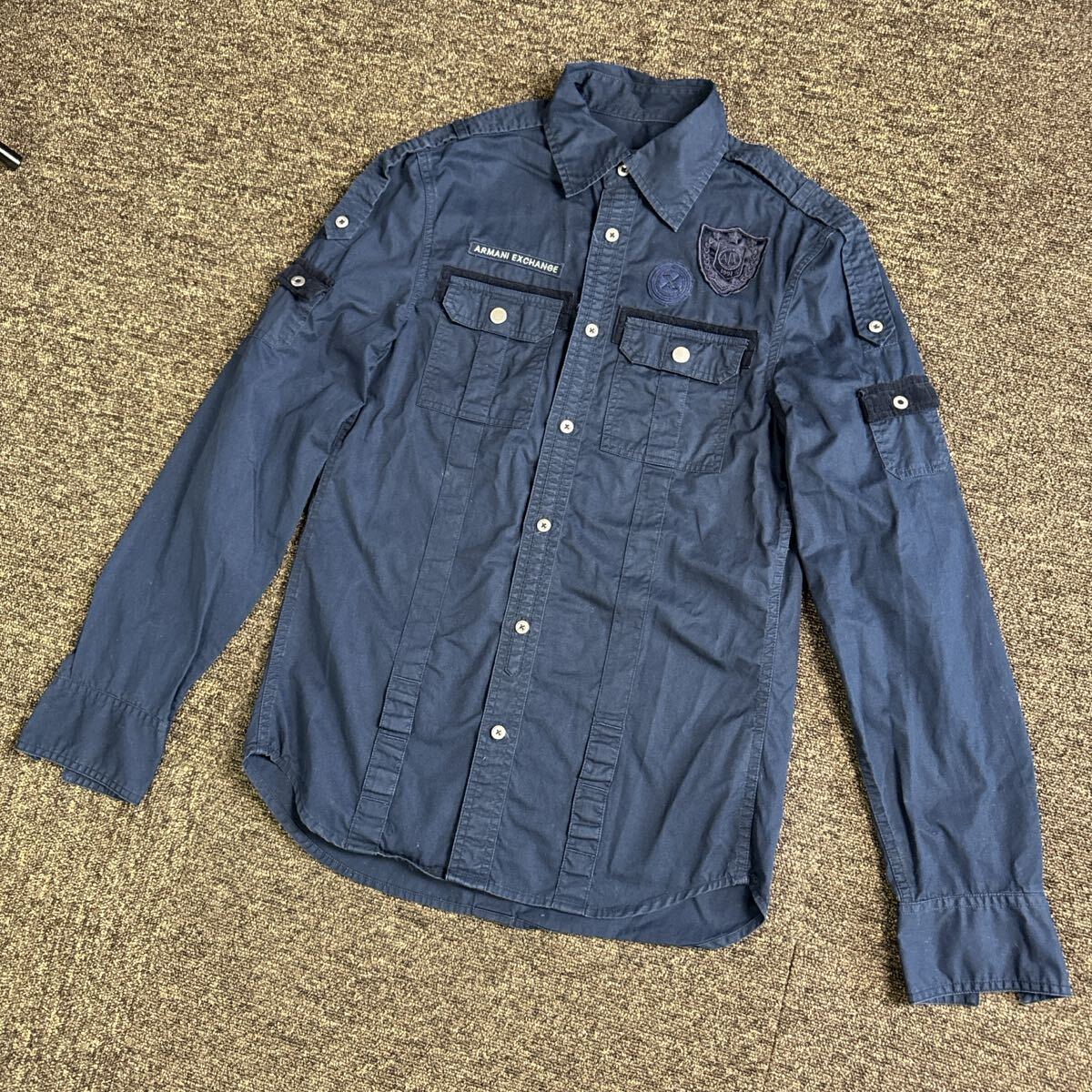 - アルマーニ シャツ 長袖 ミリタリー ネイビー