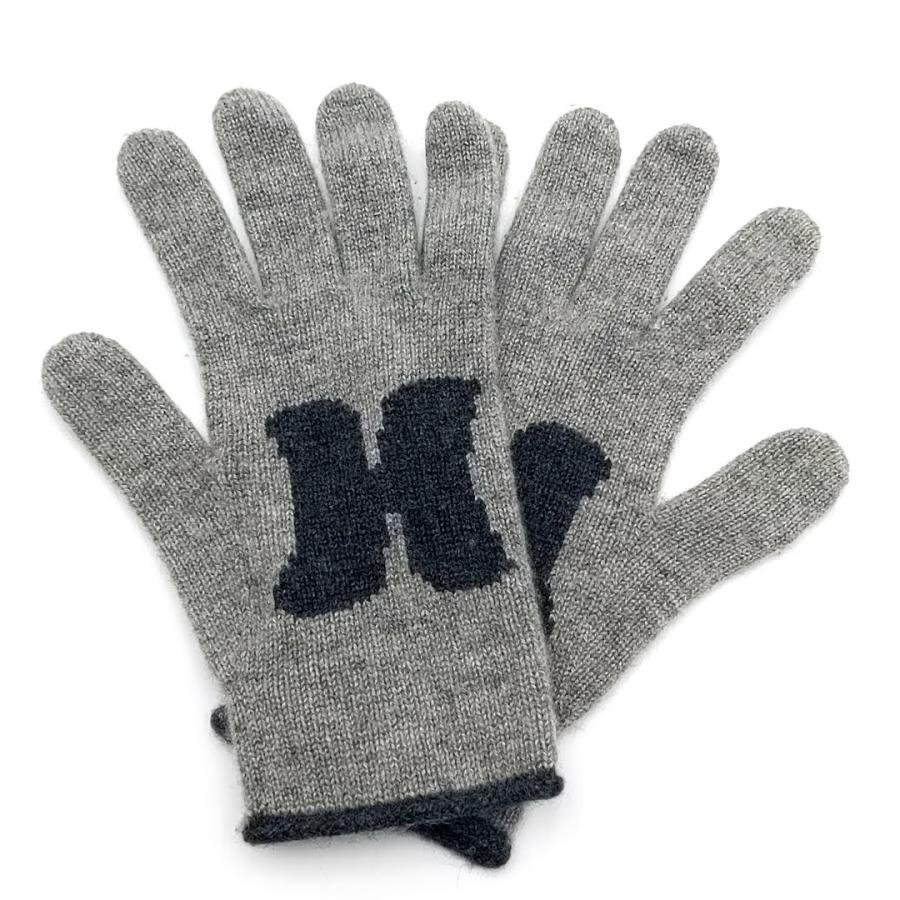 - 送料無料 エルメス HERMES 手袋 ニット カシミヤ100% 伊製 イタリア製 灰 グレー系 レディース