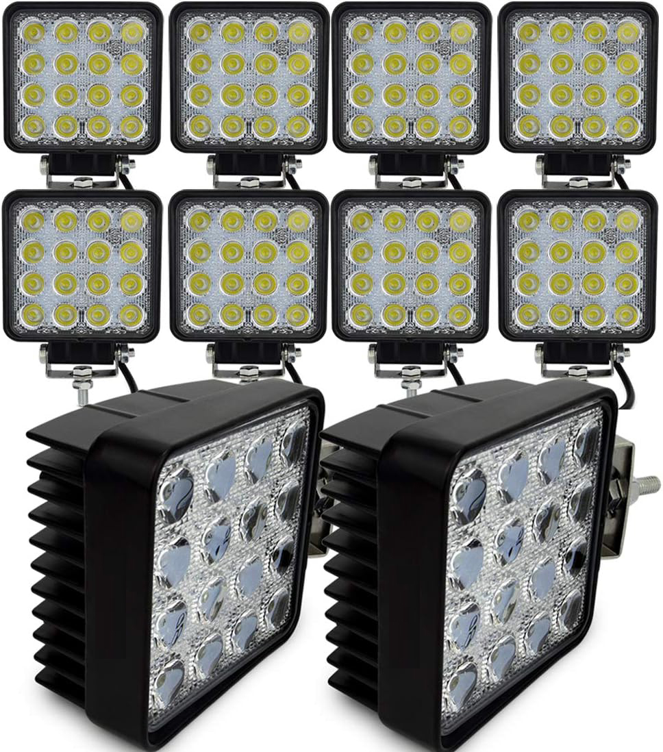 > 48W LEDワークライト LED 作業灯 ワークライト 広角タイプ 16連LED 車外灯 農業機械 6000K ホワイト 12V-24V対応 10個入り
