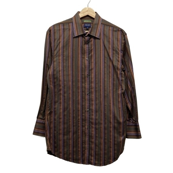 > ケンゾー KENZO 長袖シャツ サイズ40 15 1/2 - ダークブラウン×オレンジ×マルチ メンズ ストライプ 美品 トップス