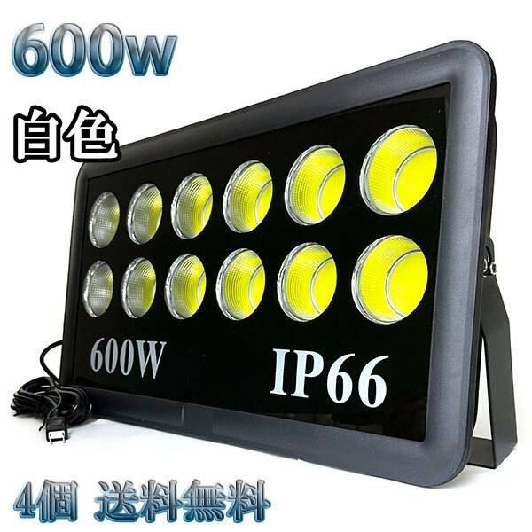 - 600W LED投光器 COB 照明 60000lm 6000w相当 100V 3mコード 倉庫 車庫 工場 看板 白色 【4個set 送料無料】