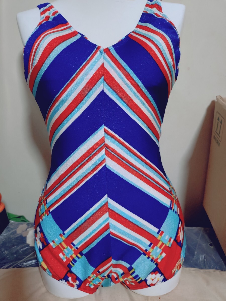 - M4506◆fair nikki◆セレブなブルー系ストライプ柄ワンピース水着◆11L