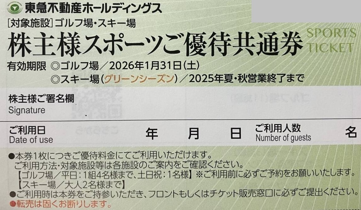 - 即決!東急不動産 スポーツご優待共通券 株主優待券 複数あり