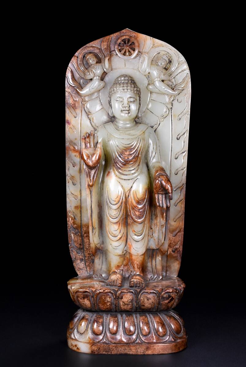 > ◆珍蔵◆中国古美術 戰漢 高古玉 和田玉彫り蓮花立仏像 仏造像 珍蔵精品 細密細工造 置物 擺件 古賞物 時代物 A18