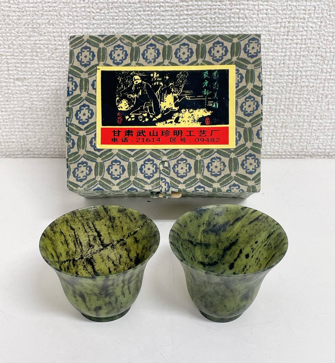 - 【葡萄美酒夜光杯 盃 2客」】ぐい呑み/中国工芸品/箱入り★/グリーンマーブル/インテリア/A78-261