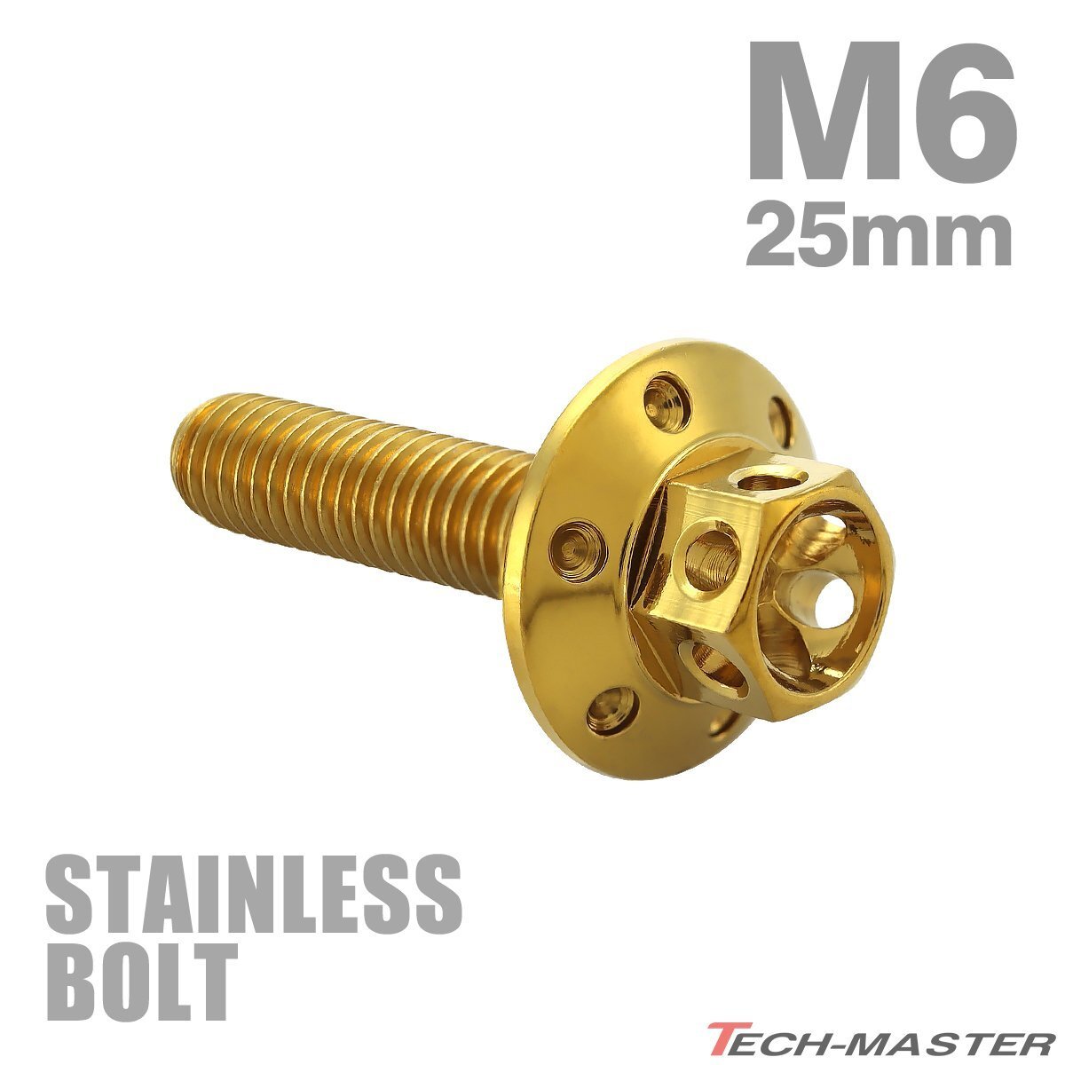 - M6×25mm P1.0 フランジボルト ワイドフランジ フラワーヘッド ステンレス ゴールド カウル フェンダー 車 バイク カスタム 1個 TB0964