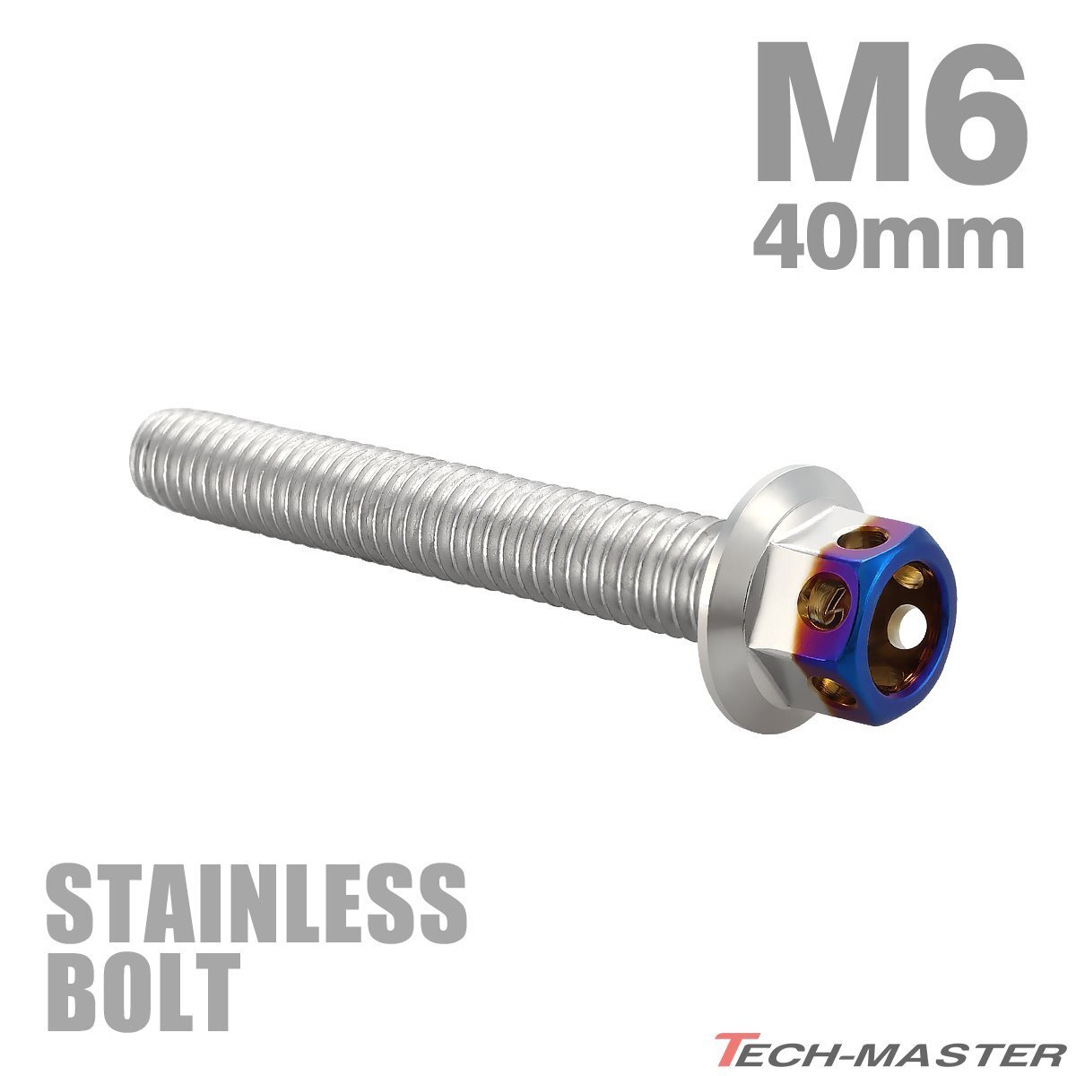 > M6×40mm P1.0 フランジボルト ヘキサゴンヘッド ステンレス シルバー×焼きチタンカラー エンジン 車 バイク カスタム 1個 TB0667