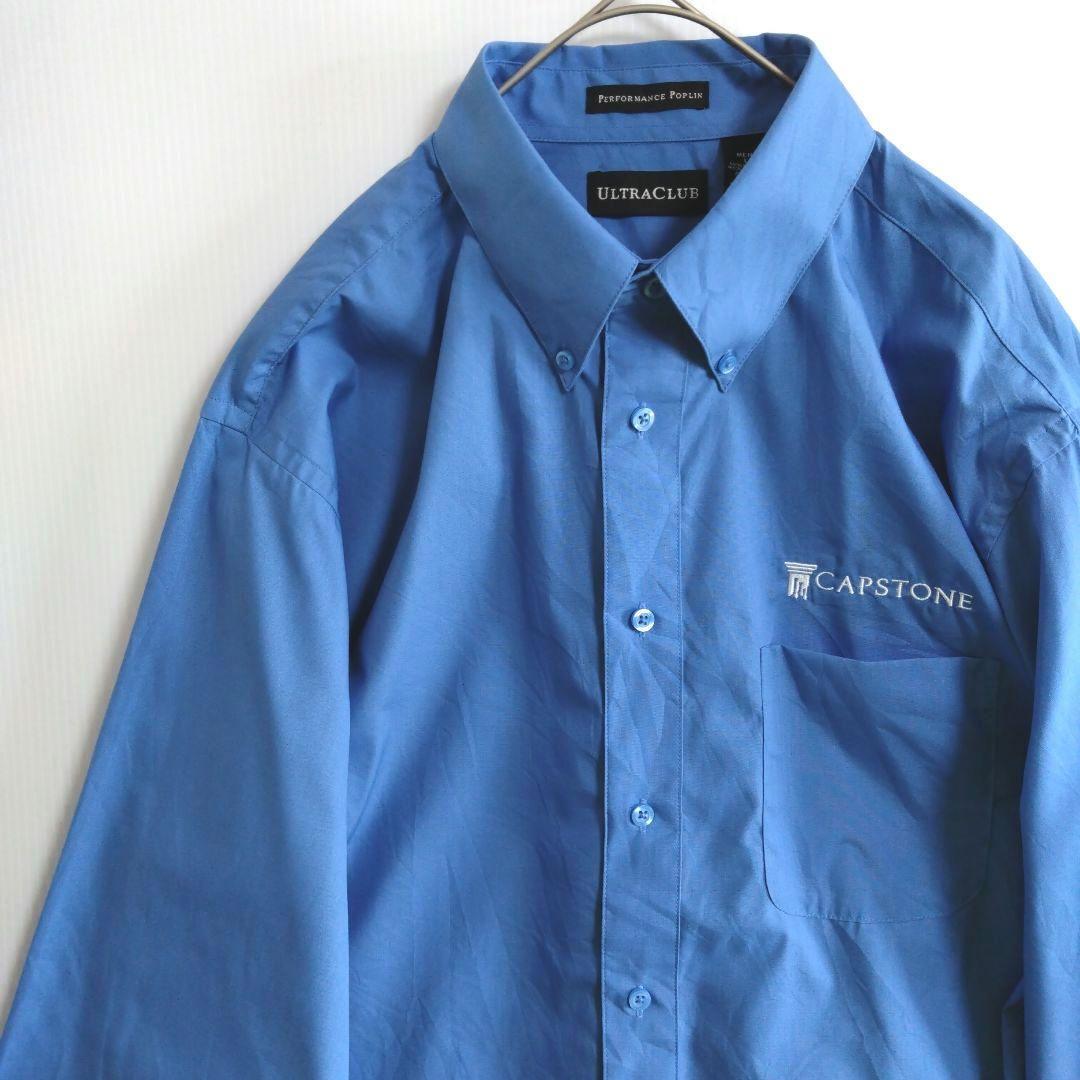 - 2498 ULTRA CLUB 長袖ワークシャツ L 青 刺繍ロゴ US古着