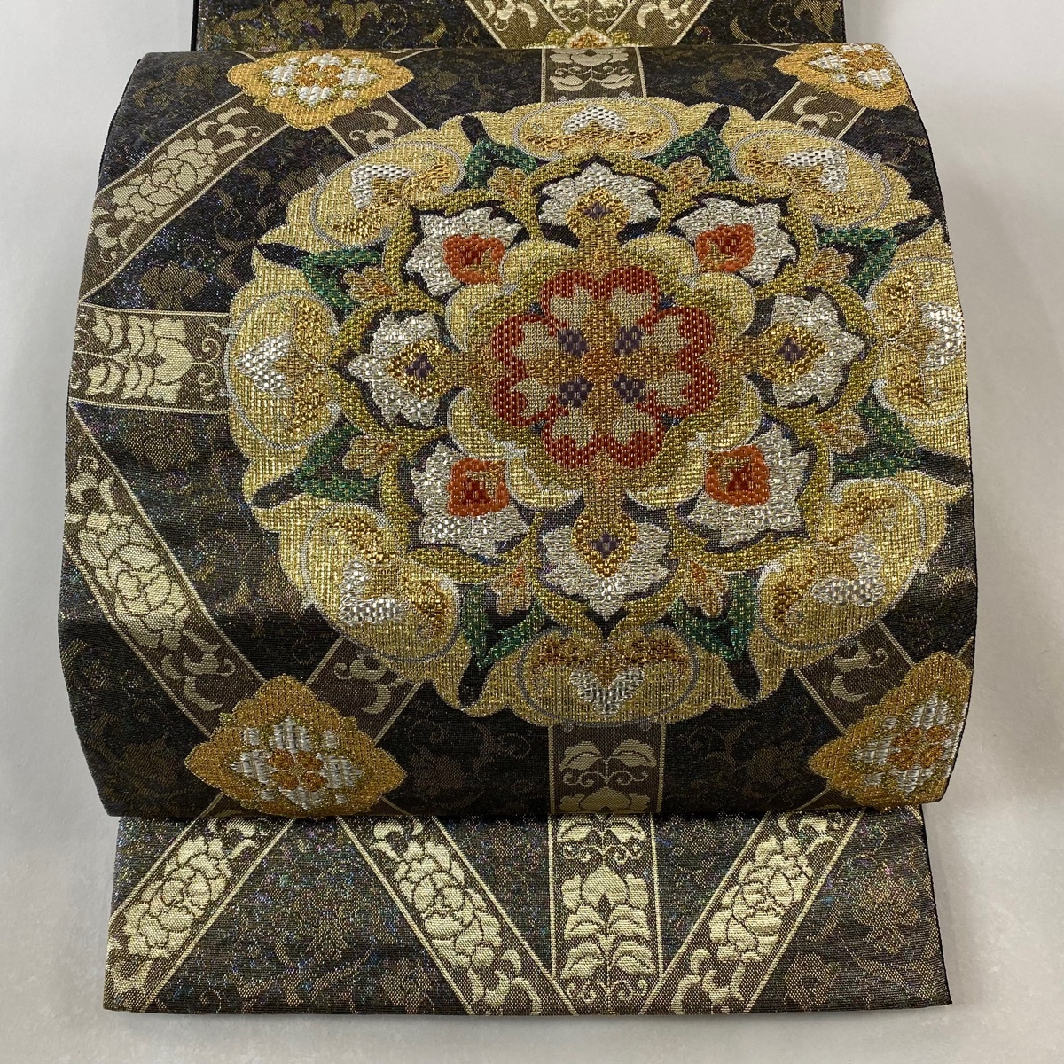 > 袋帯 美品 秀品 華文 草花 箔 金糸 黒 お太鼓柄 正絹 【中古】