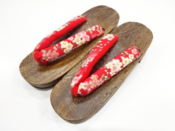 - ys7517400; 未使用品 花模様鼻緒 桐下駄(24センチ)【着】