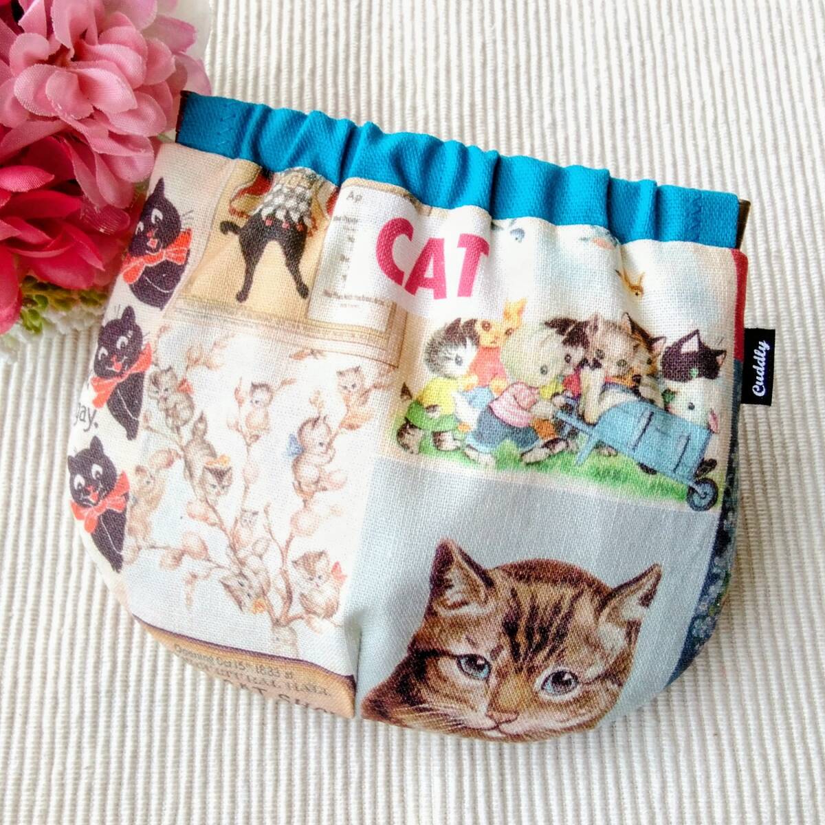 - ハンドメイド バネポーチ ヴィンテージcat ブルー