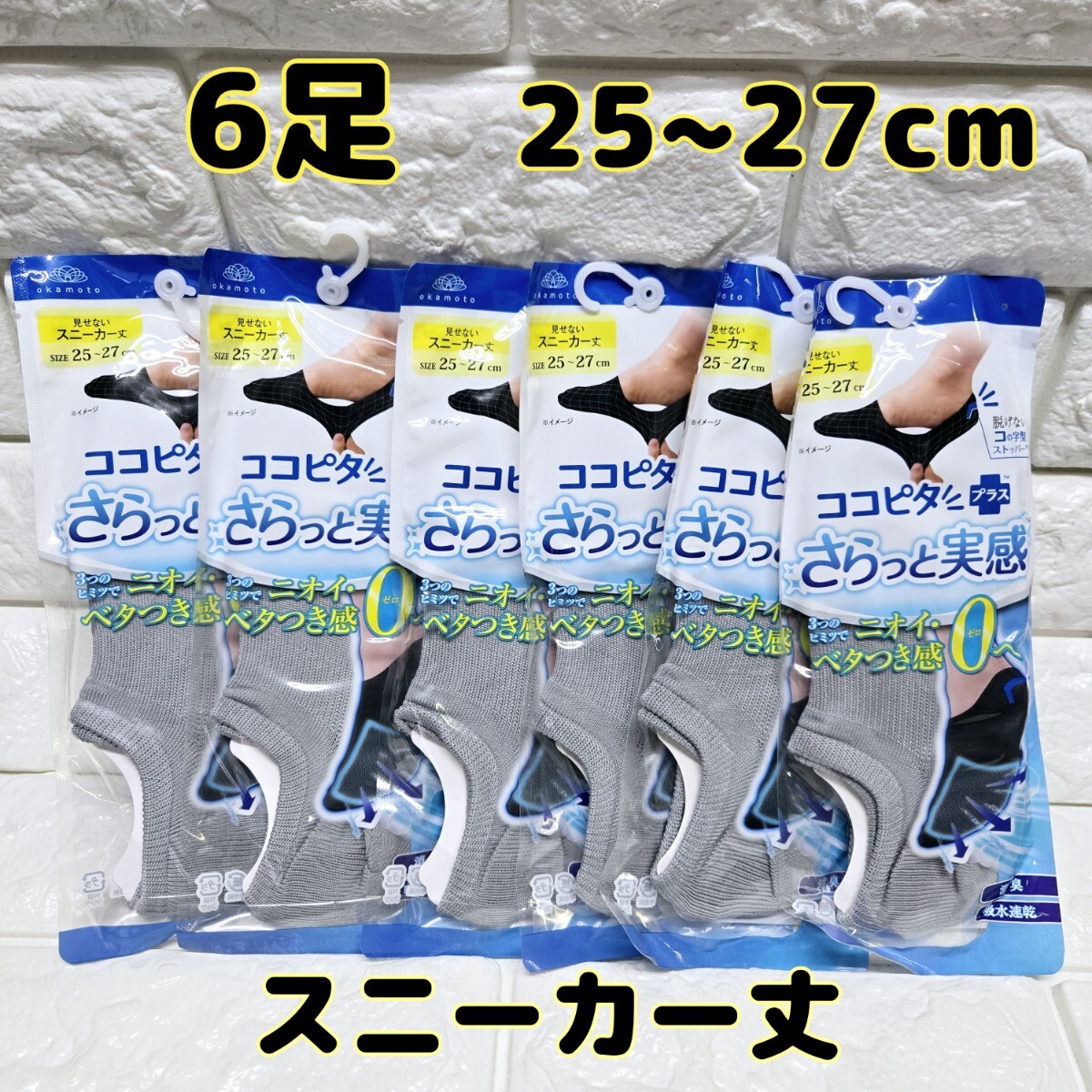 - 【6足セット】 ココピタプラス さらっと実感 見せないスニーカー丈 25~27cm ニオイ・ベタつき感ゼロへ 消臭 吸水速乾 脱げないコの字型