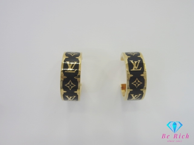 - ルイ ヴィトン LOUIS VUITTON M01833 ピアス ナノグラム エナメル ブラック ゴールド メッキ フープピアス【中古】【送料無料】ba3471
