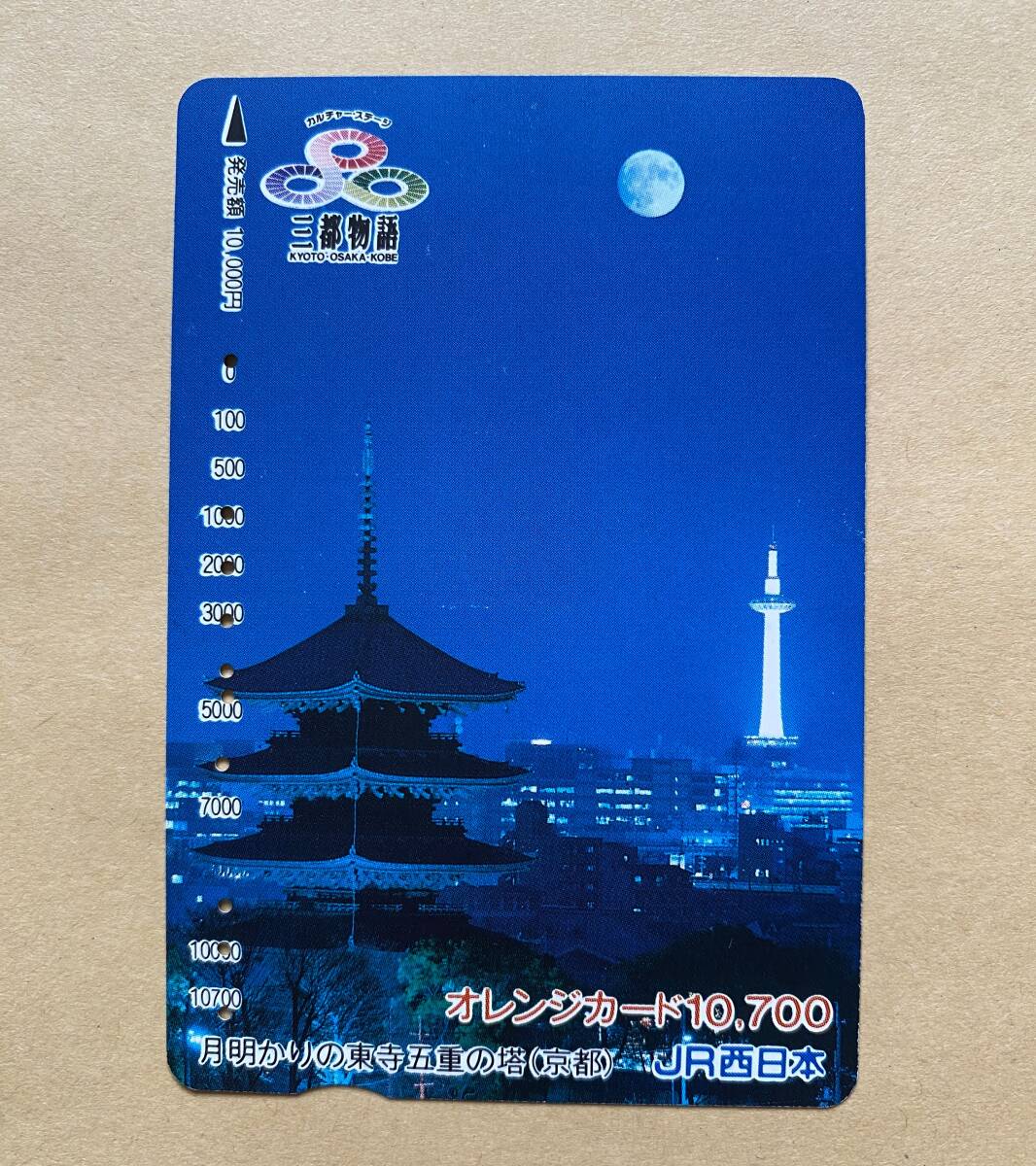 - 【使用済】 オレンジカード JR西日本 三都物語 月明かりの東寺五重の塔(京都)