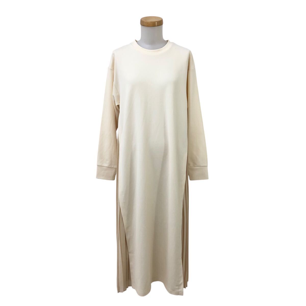 > 9Nm323-9 nano universe ナノユニバース サイドプリーツ 長袖 カットソー ロング ワンピース ワンピ アイボリー レディース F