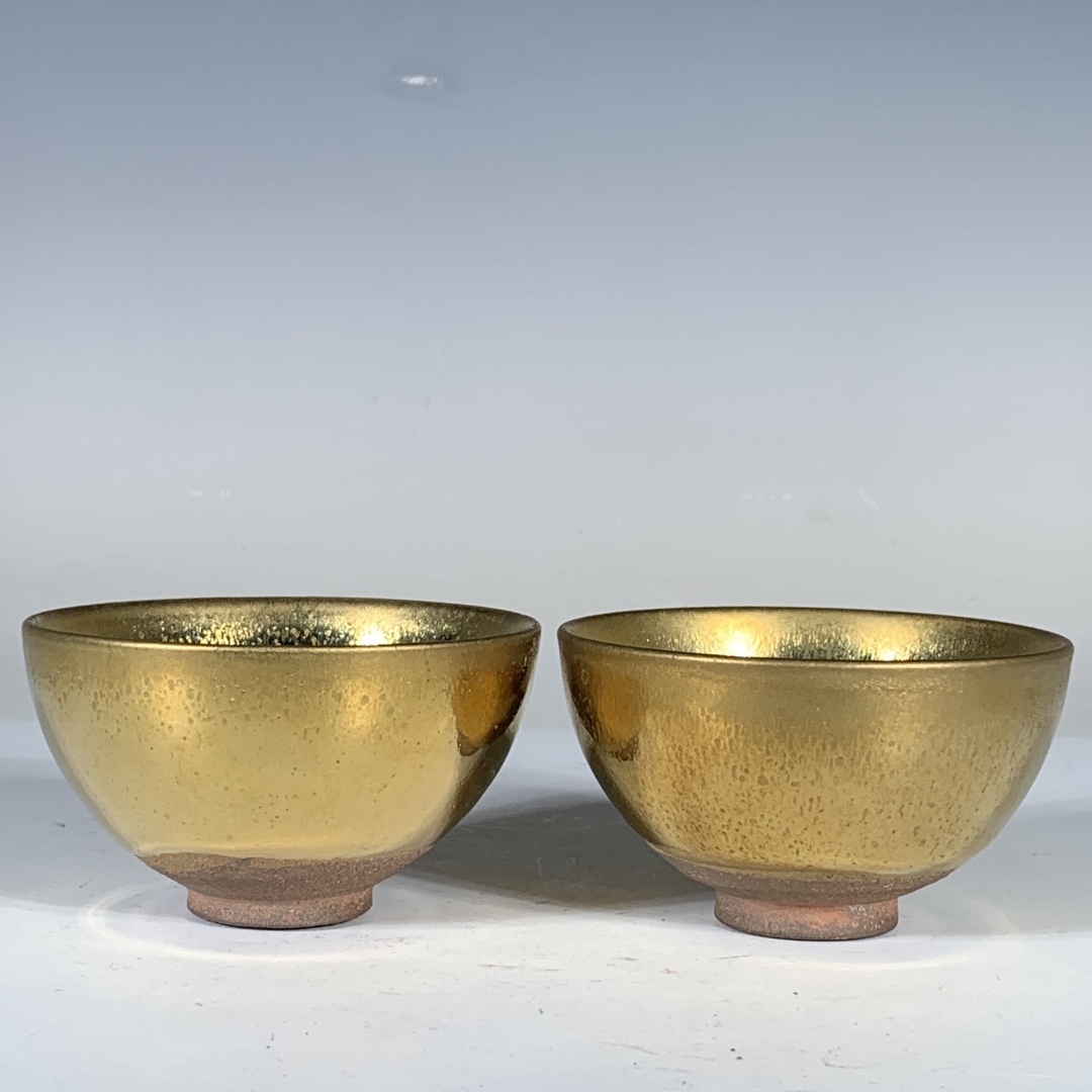 - 宋 古陶磁器 建窯 黄金盞 油滴盞 一対 供御款 盃 建盞 茶盞 酒碗 茶碗 陶芸 時代物 東洋彫刻 旧家蔵出し 唐物 中国古玩 古美術品