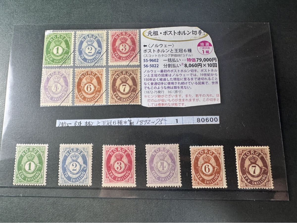 - 購入80,600円 ノルウェー ポストホルン 王冠 6種 1972年 ~ 1975年 発行 ヒンジ跡 切手 海外 世界 外国 希少