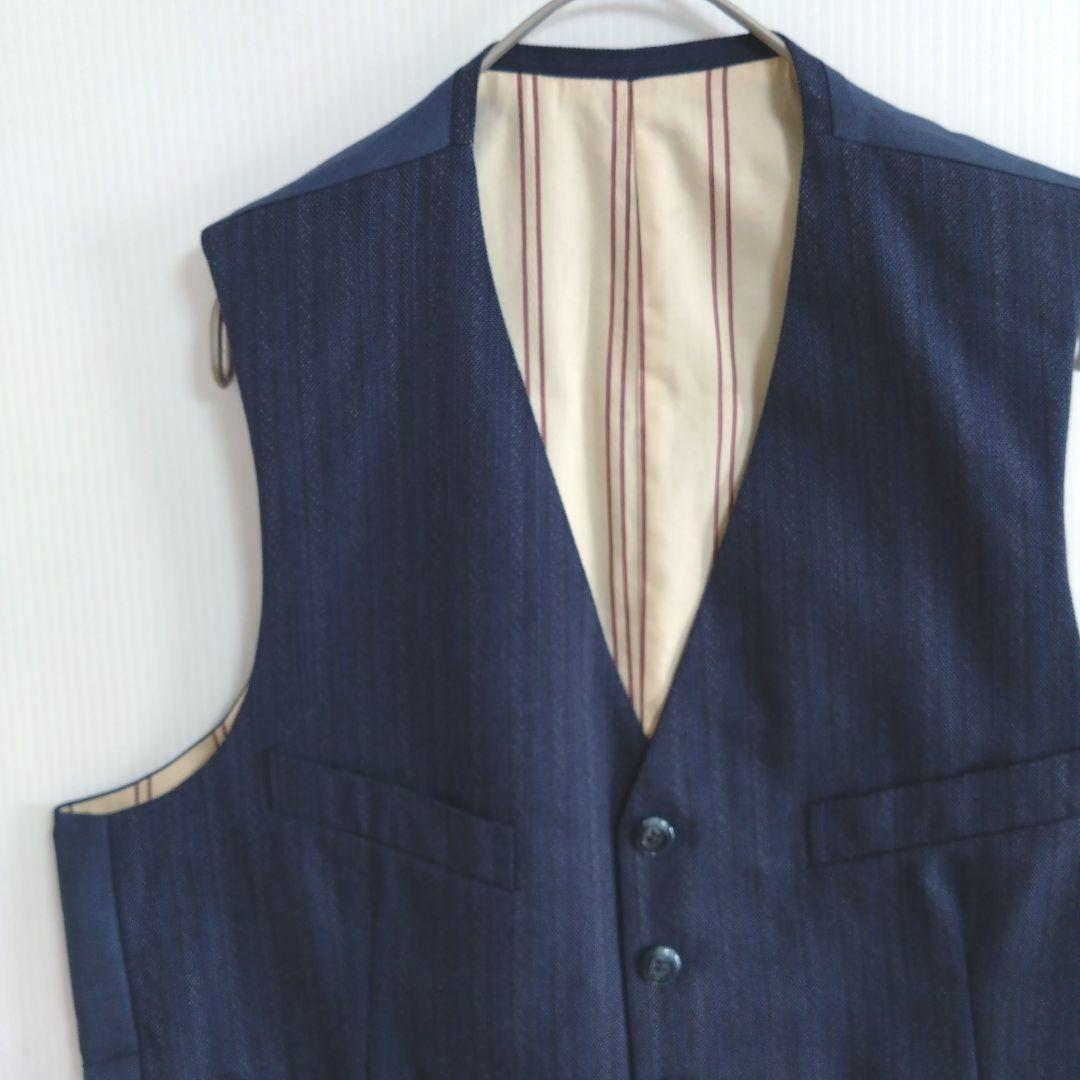 - 109 スーツベスト ML 濃青灰 縦縞柄 ジレベスト