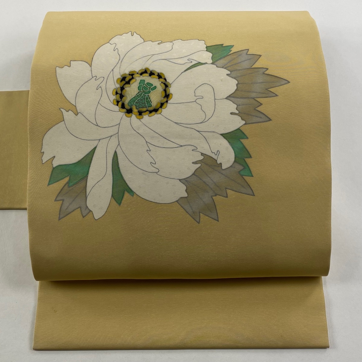 - 名古屋帯 秀品 落款 牡丹 金通し ベージュ 正絹 【中古】