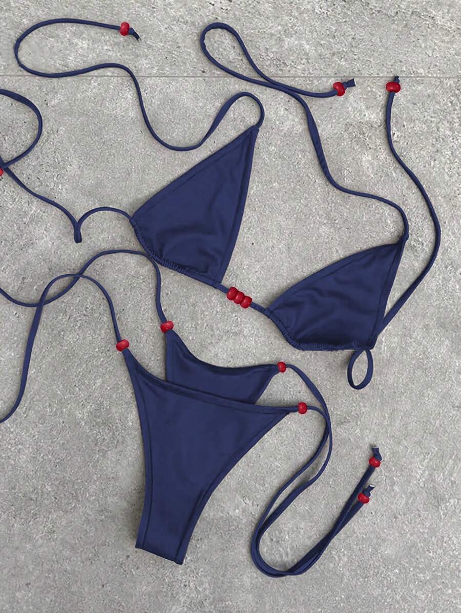 - レディース 水着 ビキニセット 公式 セクシーな無地ストラップ付き レディース ビキニ水着