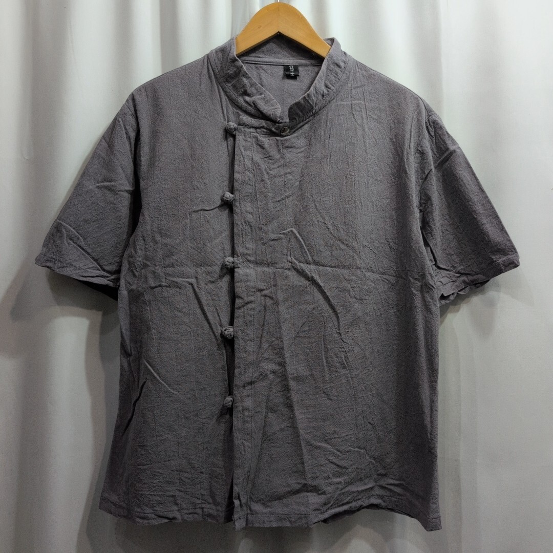 - 【送料420円】CLY-HOMEN 綿麻 チャイナシャツ L相当 メンズ 半袖シャツ コットンリネン グレー チャイナボタン