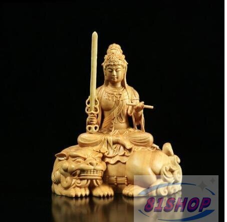 - 「81SHOP」文殊菩薩像 木彫り 仏像★招財開運★鎮宅辟邪★精密細工★黄楊木