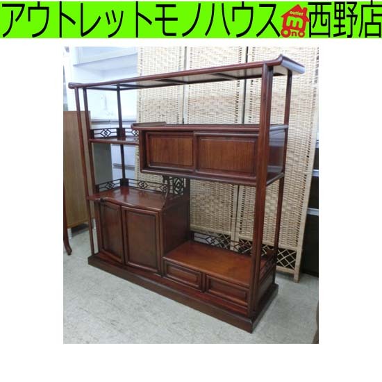 唐木家具 茶箪笥 幅120 飾り棚 違い棚 茶棚 レトロ アンティーク 和モダン家具 札幌 西野店