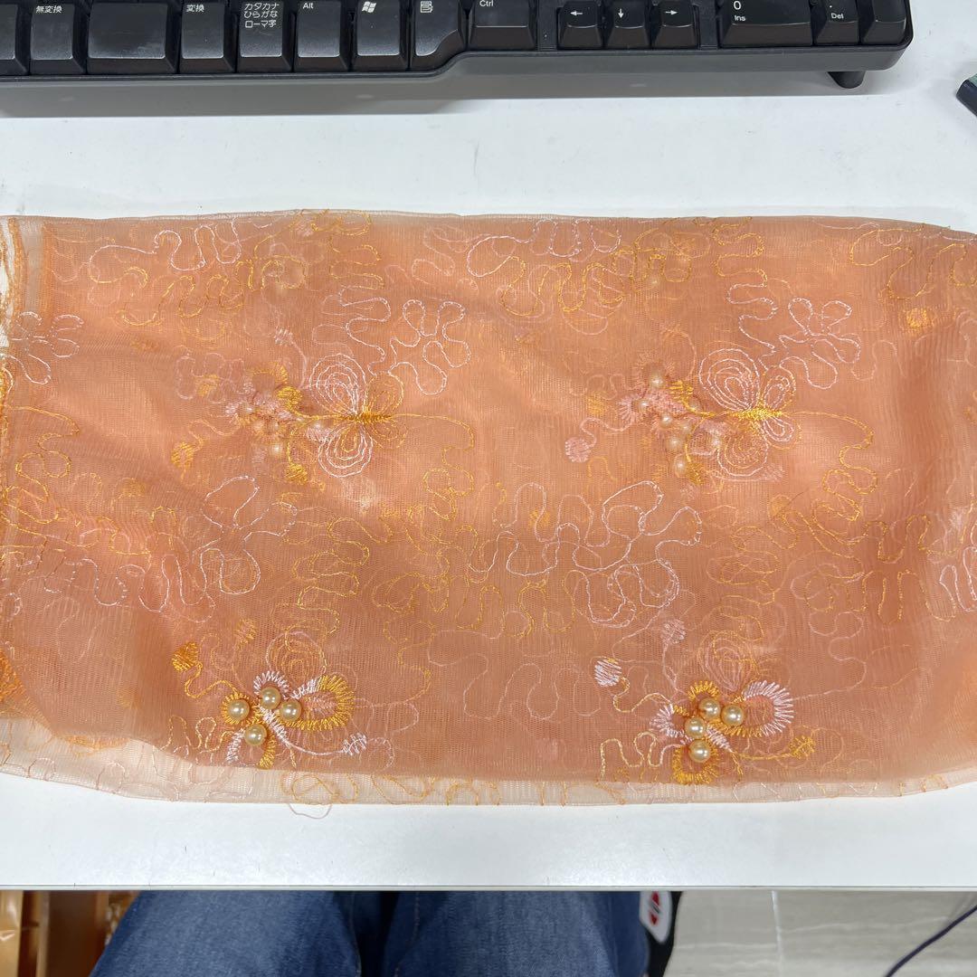 - ●服-2●レディースストール オレンジ レース ビーズ