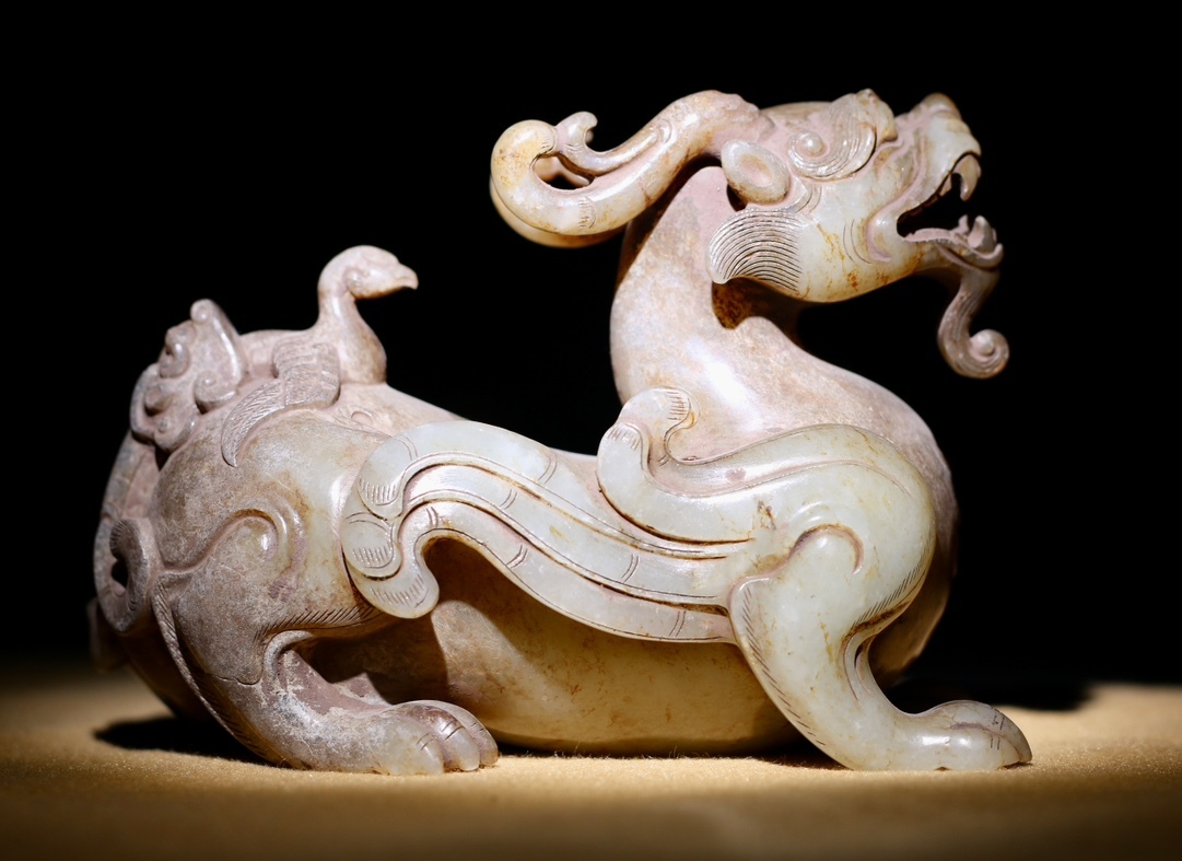 - 9+GV8577「東洋美術」 人間国宝 和田玉 極細工 古置物 中国古美術 【珍しい縁起の良い獣】 旧物 珍品 収蔵価値が高い