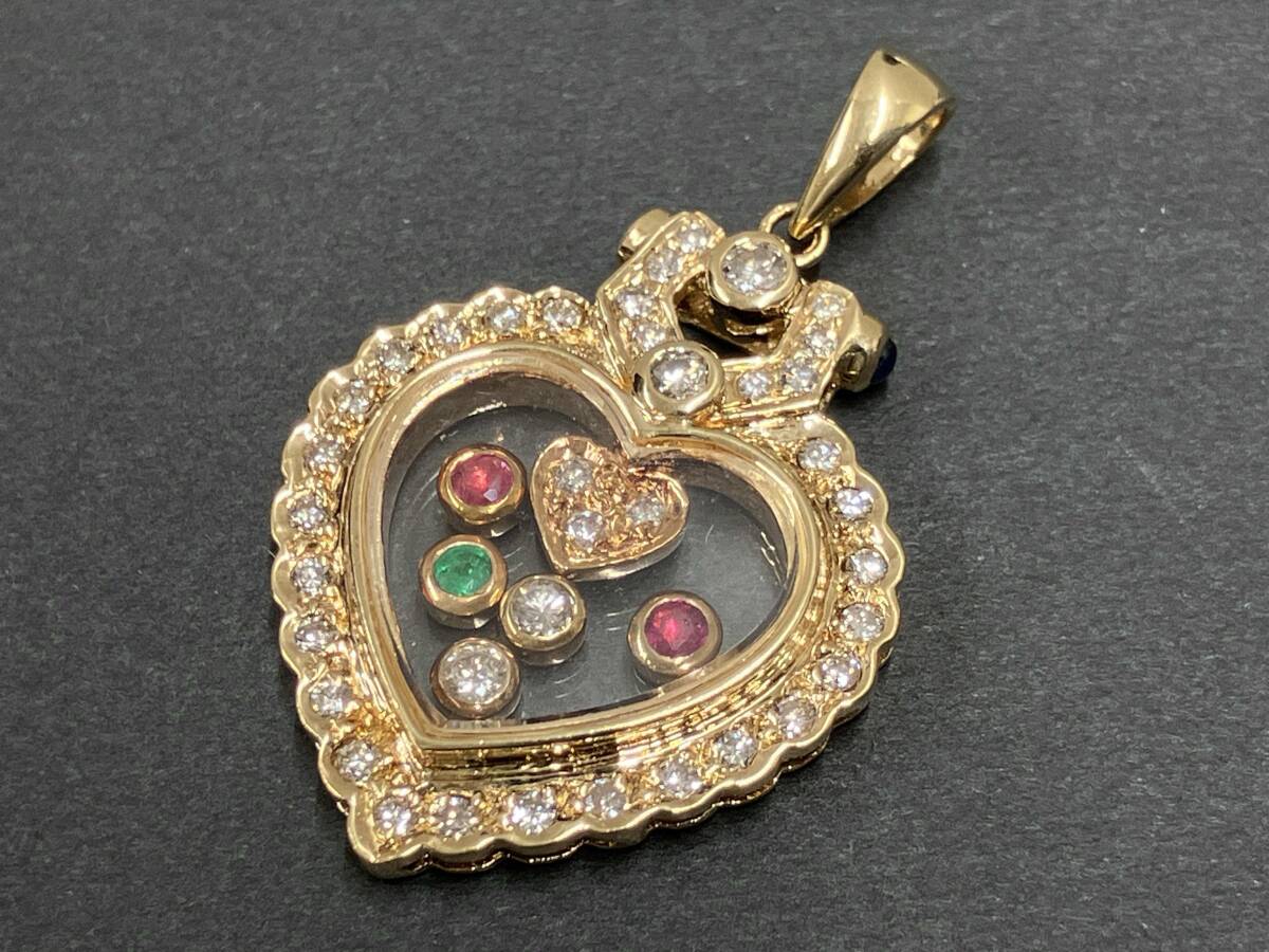 - 【クリーニング済】K18 ゴールド トップ 総重量約7.6g 天然ルビー 天然ダイヤモンド 鑑別カード付 ハート型