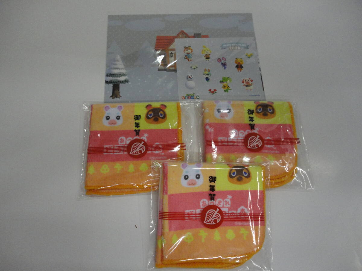 - 非売品 どうぶつの森 ミニタオル 3個 + カード&シール