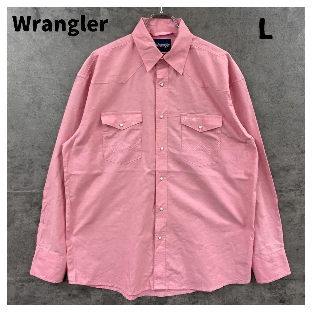 - ラングラー 桃色 L ウエスタンシャツ 長袖 シンプル 爽やか【5661】