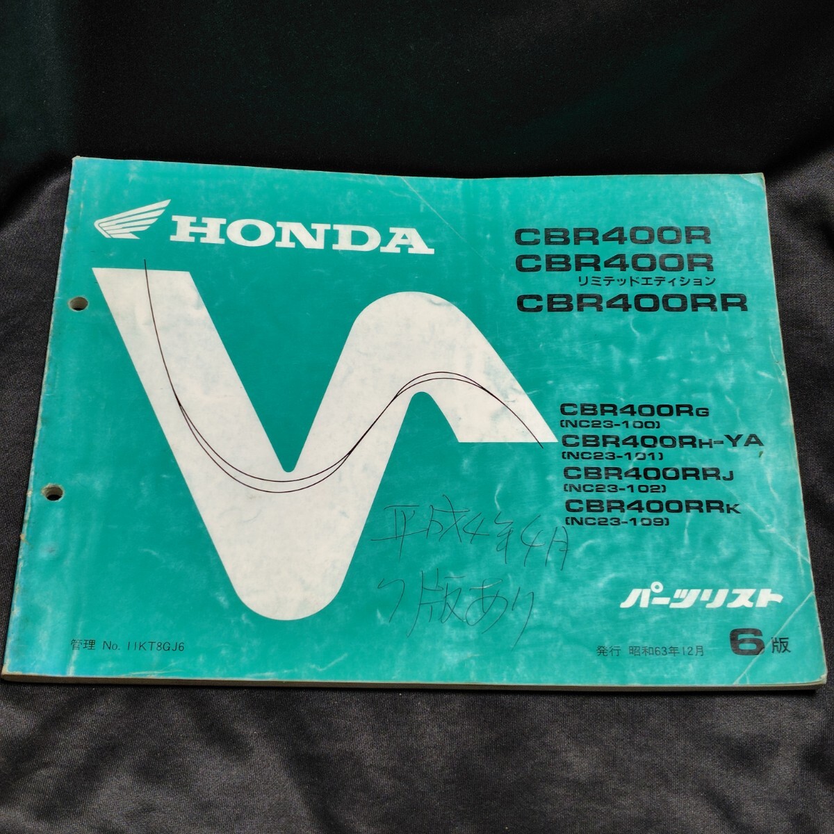 - HONDA パーツリスト 6版 CBR400R(NC23-100)CBR400R リミテッドエディション CBR400RR (NC23-102・109)昭和63年【カタログ082726】
