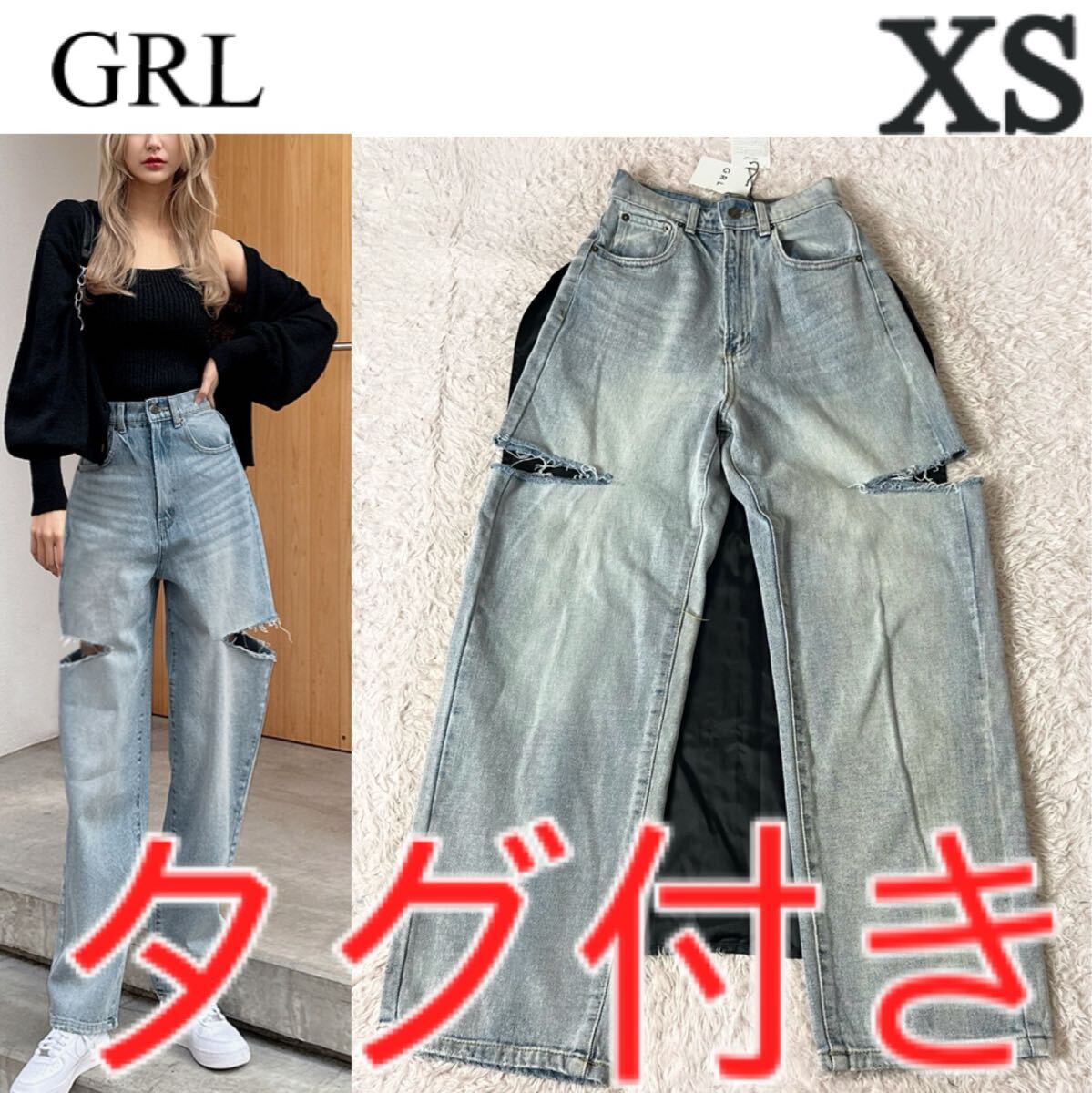 - GRL グレイル スリットデニムワイドパンツ ジーパン ボトムス ジーパン カッティング ワイドデニム ジーンズ ウォッシュドブルー XS
