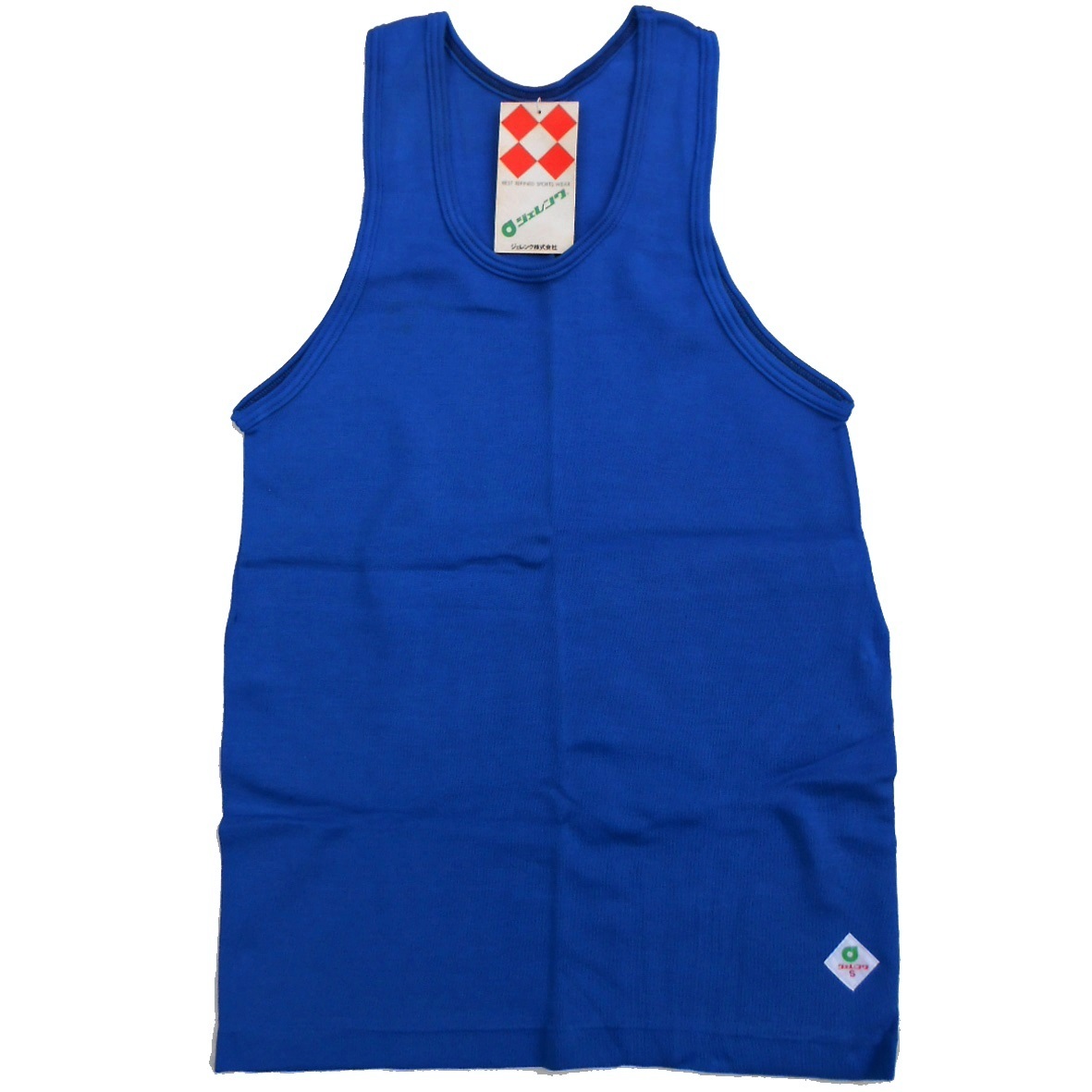 > 未使用 '70s Jelenk ジェレンク S タンクトップ 青 ブルー 体操服 運動着 学校 体育 ヴィンテージ 昭和 レトロ 当時物 asics アシックス