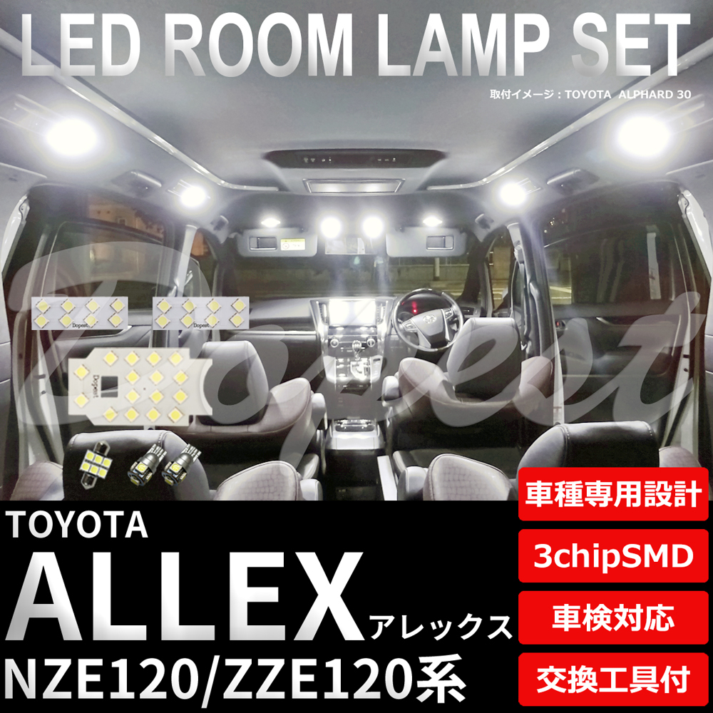 > アレックス LEDルームランプセット NZE/ZZE120系 室内灯 6500K純白 専用設計 車検対応 車内灯
