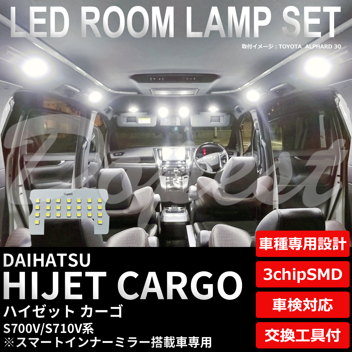> ハイゼットカーゴ LEDルームランプセット S700V/S710V系 TYPE2 クルーズ系・インナーミラー搭載車専用 室内灯 6500K純白 専用設計 車検対応