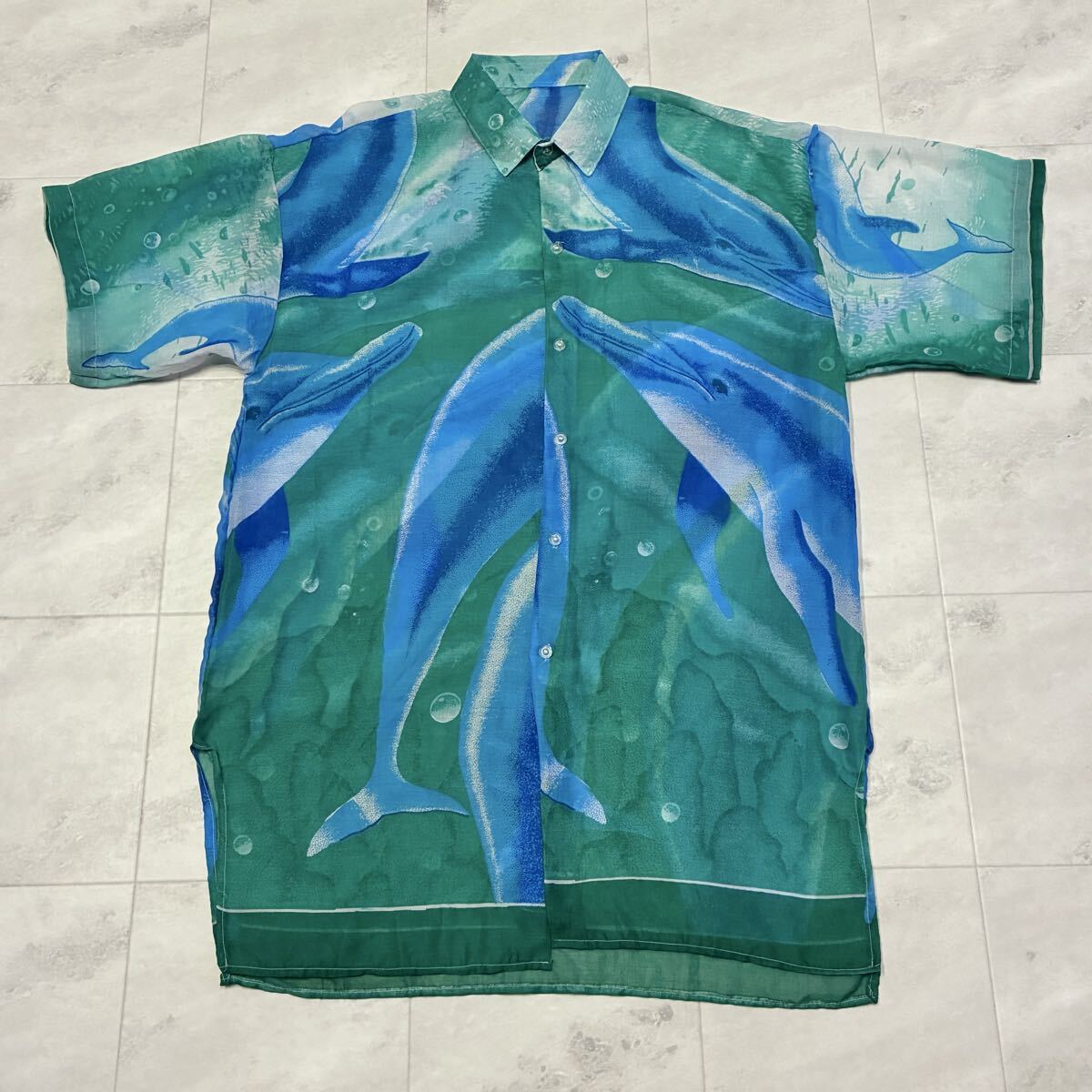 - 総柄 DOLPHIN イルカ ビンテージ 半袖シャツ