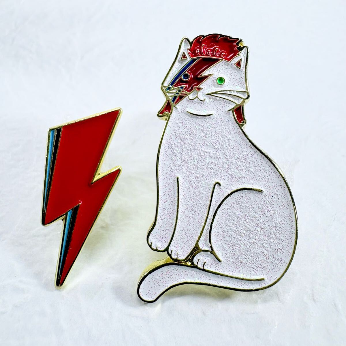 - 【ピンバッジ】デヴィッド・ボウイ アラジン・セイン 稲妻 白猫 音楽 2個セット