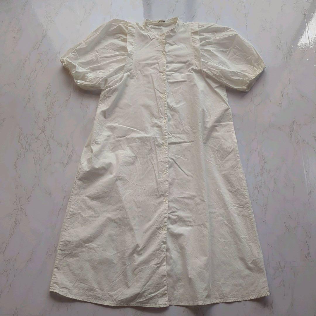 - ハドソンハニー ロングシャツワンピース L ホワイト パフスリーブ