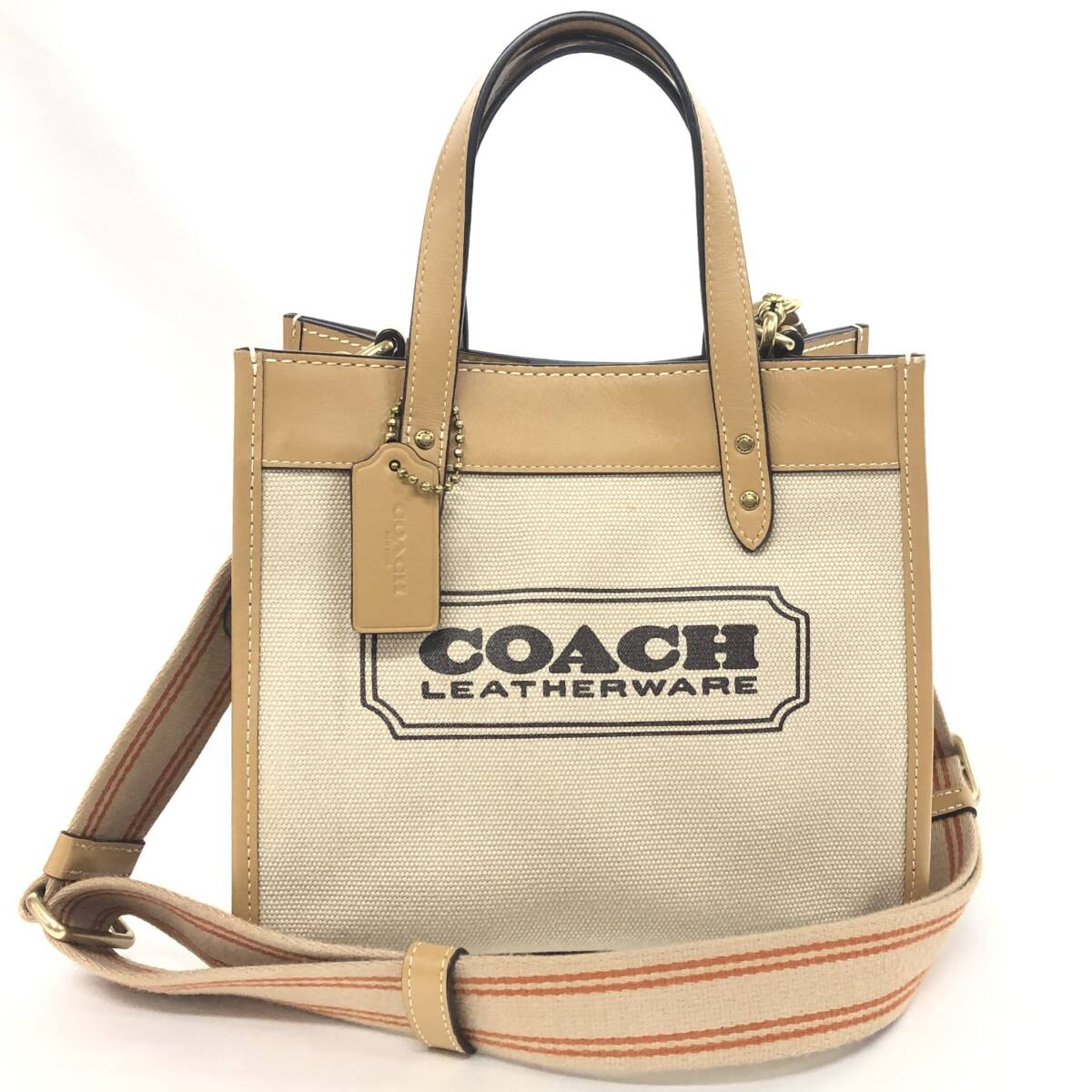 - COACH コーチ フィールドトートバッグ 22 CH740 2way ハンドバッグ ショルダーバッグ キャンバス×レザー ストラップ付 ブラウン系