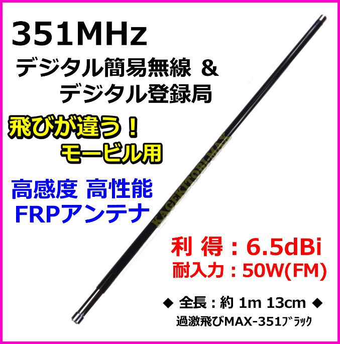 - 351MHz帯 デジタル簡易無線専用設計 広帯域受信!モービル用 FRPアンテナ 新品 VHF-UHF受信可 / モービル機 車載型 デジタル 過激飛びMAX